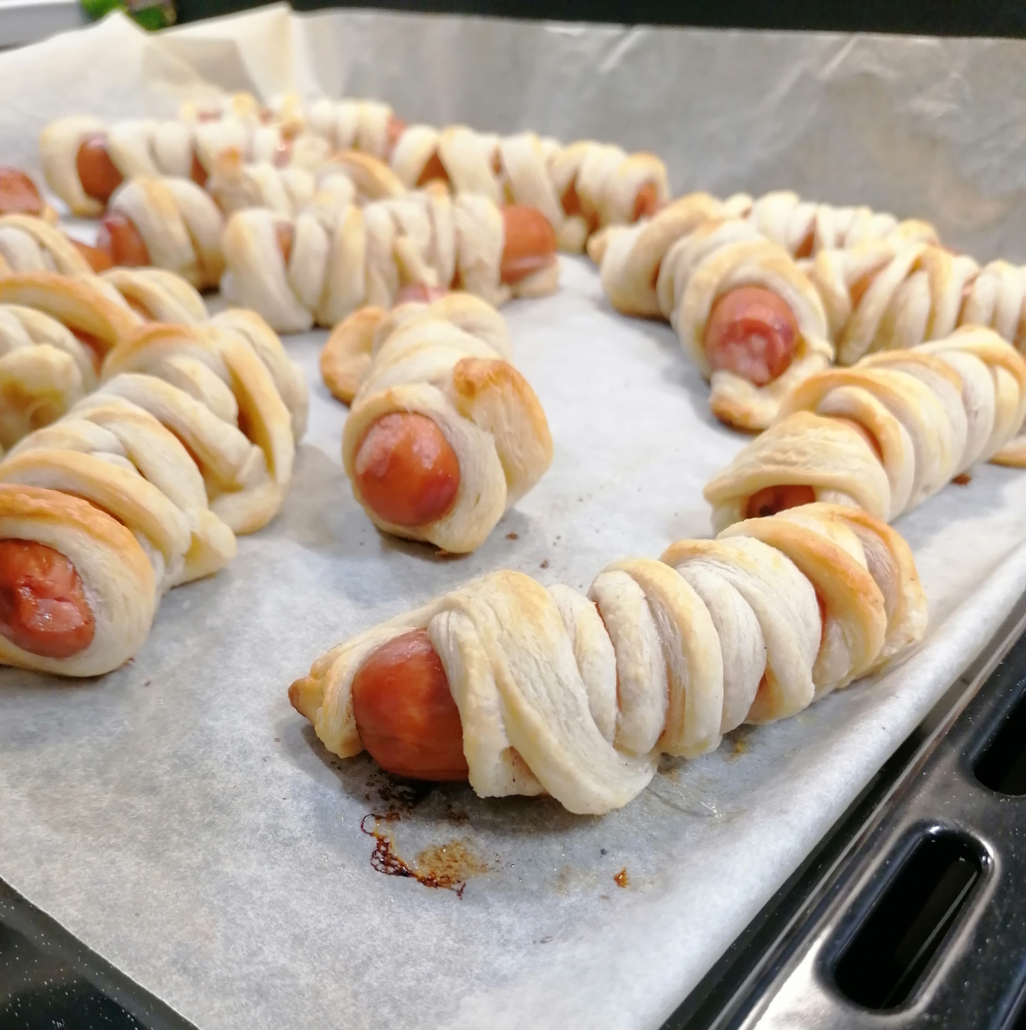 Muumio nakkikääröt ovat hauska tarjottava Halloweeniin!